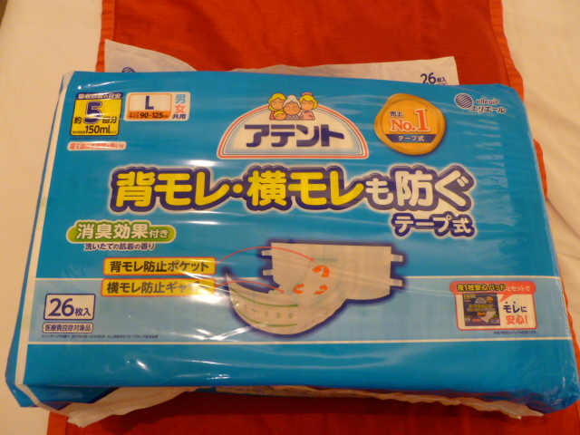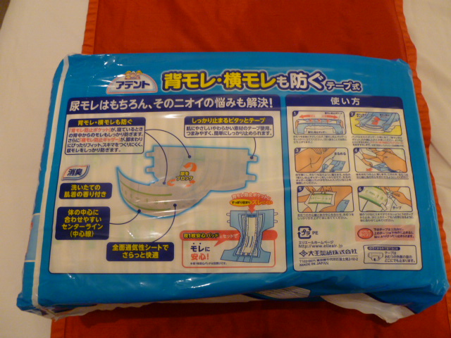 He notes that none of these diapers are manufactured locally. The Seni diapers are the same international product that we know in the U.S. [Seni diapers are available from XP Medical]. The “Chrysan” and “White You” diapers are Korean products.