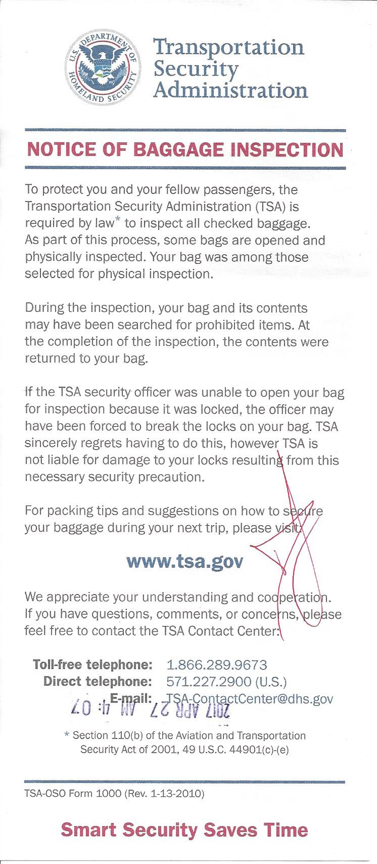 Post subject: TSA baggage check