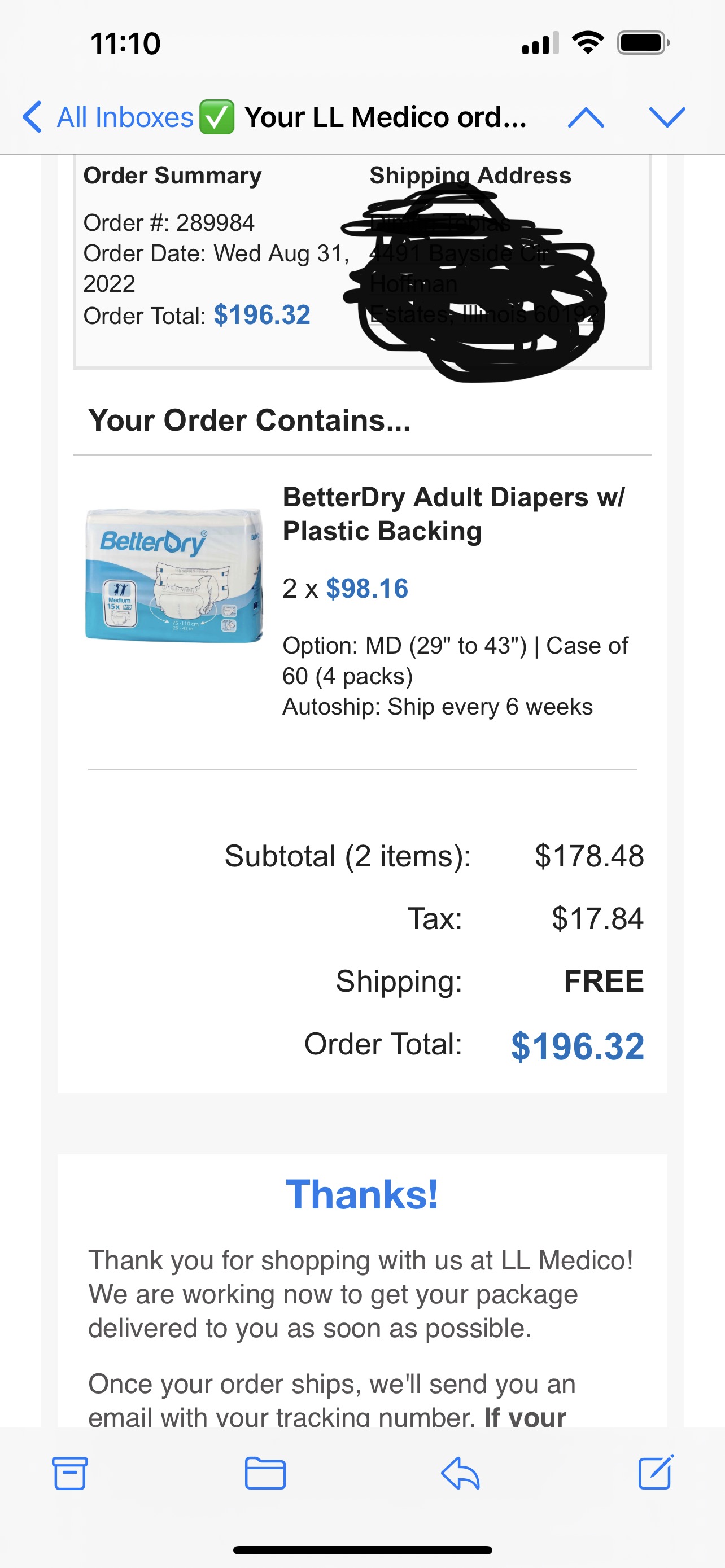 I guess dummies like me? Below are receipts from both llmedico and north shore. My insurance doesn’t cover diapers and I don’t have a fsa or hsa. Maybe I am dumb but I assumed the majority of people don’t either. On no incontinence supply site that I have purchased items from outside of rearz in Canada have I ever NOT been charged sales tax.