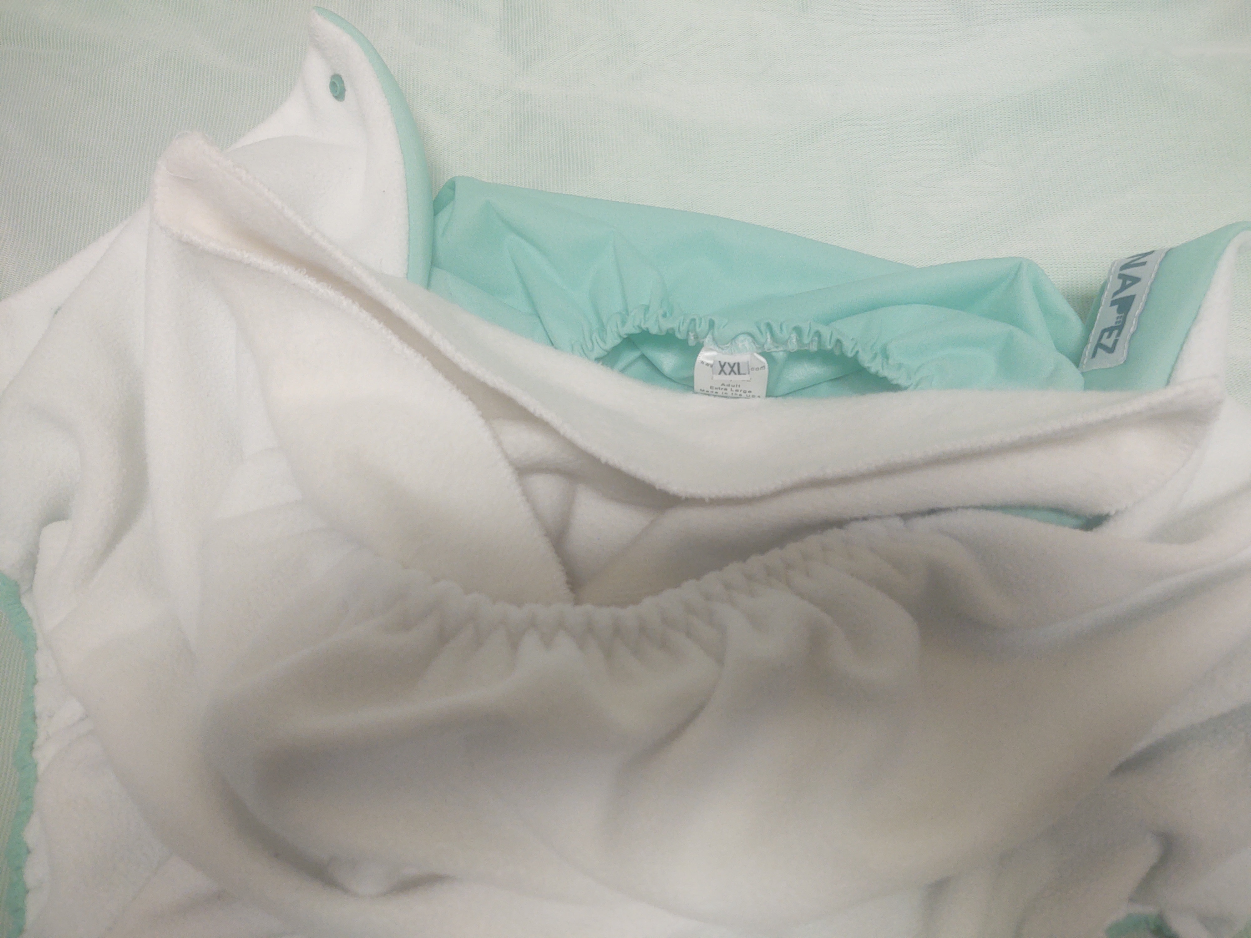 I really like the microfleece inner layer, as it is very soft quickly wicks the wetness away from the skin and into the soaker. The Snap-EZ is my favorite cloth diaper for this reason...my skin feels dry. Thus, I get the economy and softness of cloth with the skin protection of a premium disposable. And, the Snap-EZ fit me like a glove despite my size. The newest generation XXL is refined to the point that I no longer have to wear fixing pants or snug underwear over them to keep them up.